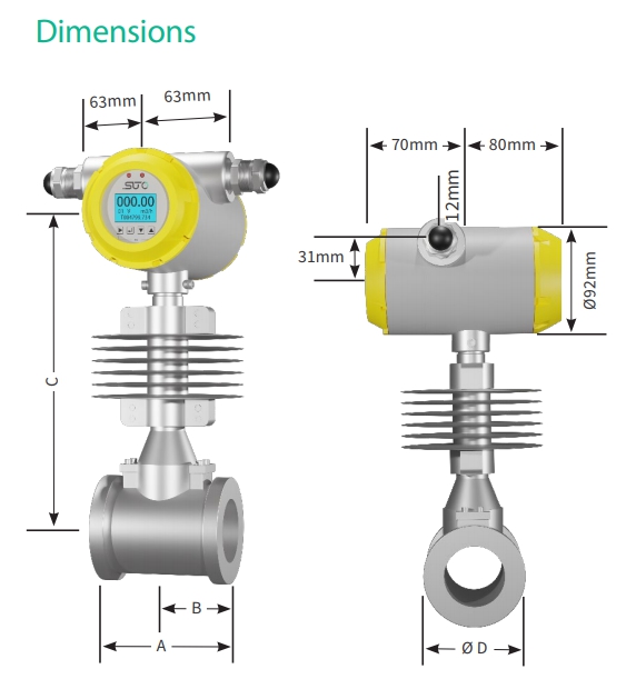 Selectable units | m³/h, m³/min, kg/h, t/h |