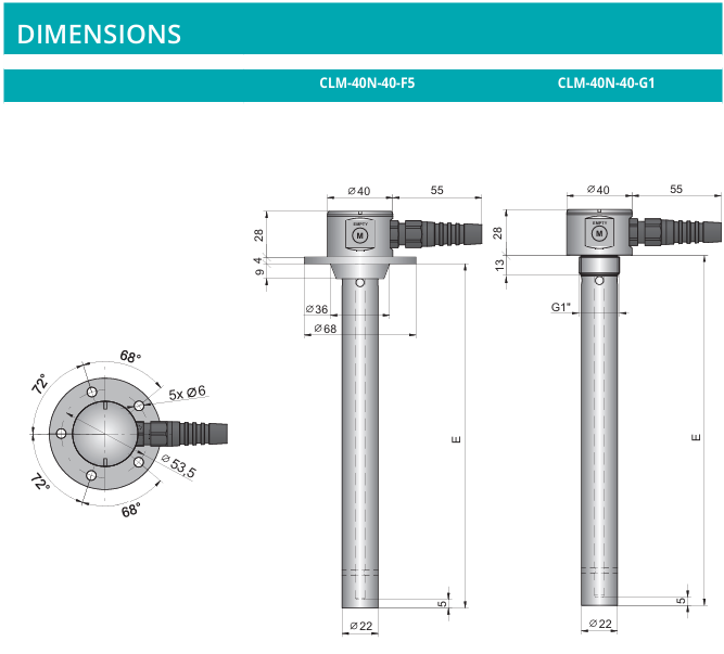 Process connection | CLM – 40N–40–F5–_ CLM – 40N–40–G–_ | Flange with 5 holes Thread G 1“ |