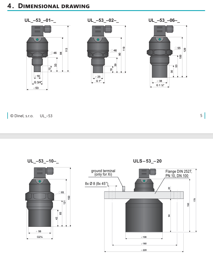 Weight | ULS–53_–01–_ ULS–53_–02–_ ULS–53_–06–_ ULS–53_–10–_ | 0,20 kg 0,20 kg 0,25 kg 0,65 kg |