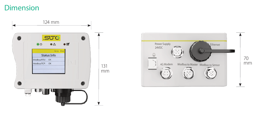 Dimensions | 124 x 102 x 70 mm | Digital input | Mobus/TCP 16 x RS-485 Modbus RTU Sensors |