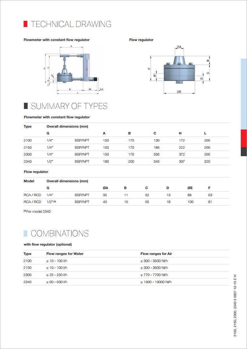 0,05 l/h - 1000 l/h refer to tables on pages 6 and 7 |