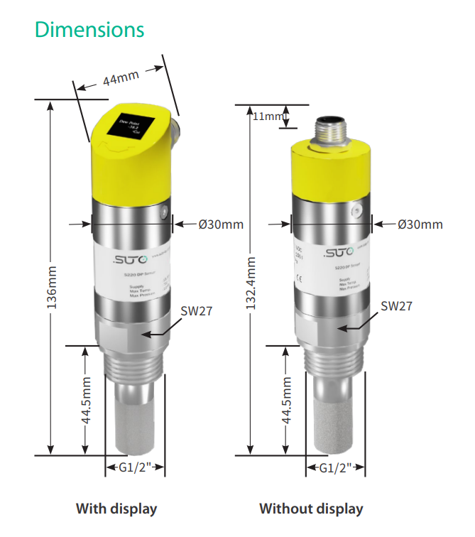 If the S211 is used in CO2 the range is limited to -40 °C Td