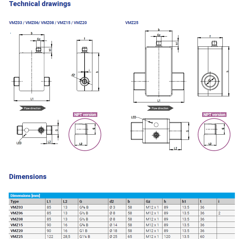 Analogue output 4...20 mA | VMZ03 | VMZ06 | VMZ08 | VMZ15 | VMZ20 | VMZ25 |